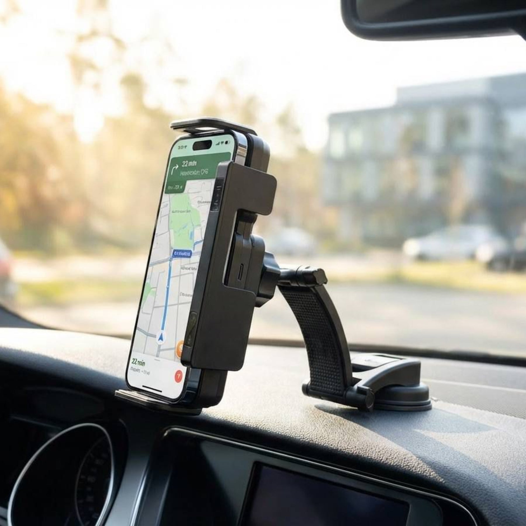 Uchwyt GripX™ Ultra z przyssawką umożliwia szybki montaż na desce rozdzielczej.